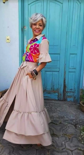 Vestido largo confeccionado en tela híbrida (rayón con expandex). Bordado de Jalapa de Díaz.